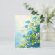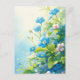 This beautiful design features a blooming cluster of blue and white forget-me-not flowers shown in a lush, natural garden setting. Rendered in a soft and textured watercolor style, the primary flowers boast vibrant sky-blue petals with bright yellow centers, while delicate white and pale lavender blossoms add a gentle contrast to the arrangement. The flowers are nestled among thick, heart-shaped green leaves and slender stems that reach upward toward a sun-drenched, pale blue and yellow sky. Whimsical white paint splatters and delicate yellow petals drift through the airy scene, creating a sense of natural grace and artistic flair. The overall aesthetic is sophisticated, peaceful, and full of botanical beauty, making it an exceptional choice for flower lovers and fans of traditional garden art. This elegant forget-me-not postcard is a perfect choice for sending a "thinking of you" note or a meaningful message of remembrance to a friend who admires the symbolic beauty of wildflowers. You might choose to use this artistic card for a spring-themed dinner party invitation or to celebrate a professional achievement with a touch of floral elegance for your colleagues. It also makes a beautiful decorative piece for a tranquil home office or a stylish addition to a botanical journal as a small token of seasonal beauty. This versatile design is also an excellent choice for a housewarming message, a wedding thank you note, or as a heartwarming way to share a message of joy for any situation or event.
