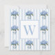 Blue and White Hydrangeas on Stripes Monogram Anteckningskort