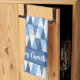 Den här kökshandduken har Julgranar mönster i ett minimalistiskt stil av geometriska trianglar. Detta är den blå och vita färgen. Du kan behålla hälsning i God jul eller ändra texten till namn eller något talesätt som du vill ha. Du kan också göra mönster på kökshandduken mindre eller större. En söt, modern köldklädd kökshandduk som skulle vara underbar för att muta upp ditt kök den här julhelgen.