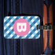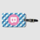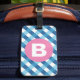 Blue and White Plaid Checked Pink Monogram Bagagebricka