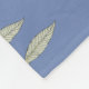 Decorative blue and yellow dream catchers and feather design on light blue fleece blanket.