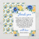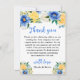 This beautiful and elegant wedding thank you card features watercolor blue, yellow and white flowers with foliage. The text combines handwritten script and serif fonts for a stylish and modern look. This is perfect for a spring or summer rustic wedding.