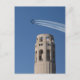 Detta vykort har en bild där fyra Blue Angel jet-kombattanter flyger i bildande nära Coit Torn.