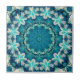 Blue Aqua Mandala Rosette Retro Hippie Kakelplatta