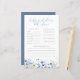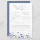 Lägg till en hjärtlig beröring till baby i en bloombabydusch med det här blå Baby i Bloom Baby Predictions and Advice Game - ett sött och meningsfullt sätt att involvera dina gäster! Designad med mjukt blått, blommigt och vildblommor inslag, är det här charmerande som en viktig dubbla för föräldrarna. Gästerna kan sitt bästa önskemål och roliga eller tankfulla gissningar i det engagerande förutsägelsespelet baby, och skapa varaktiga minnen under barnduschen. Som ett komplement till din samling av babyduschspel kompletterar den baby på ett vackert tema.