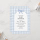 Inbjudan dina kära för att duscha föräldrarna som ska vara med kärlek och glädjas åt denna inbjudan till Blue Baby Shower. Med en charmeringsbåge som är försedd med ett känsligt blått band och klassiska blå och vita breddgrader, är denna minimalistiska men ändå elegant inbjudan perfekt för att fira pojke i stil. Med sina tidlösa blåtonar och mjuka detaljer anger inbjudan perfektens tonläge för en hjärtslitande och minnesvärd samling. Oavsett om du är värd för en mysigt sammankomst eller ett stort firande, är den här designen perfekt för att välkomna ett litet paket glädje! BBS906