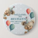Birthday Party Supplies featuring two illustrated Hedgehogs in party hats, festive balloons, and a birthday cake with glowing candles. Set against a soft blue background with a delicate heart pattern, the design radiates warmth and celebration.