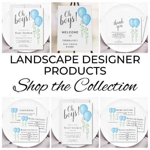 Den här tvillingpojkens babyinbjudning är dekorerad med vattenfärgsblåa ballonger och grönt eukalyptus och säger "Oh Boys!" Enkelt anpassade. Använda Verktyg i Design om du vill ändra texten storlekt, stil eller färg. Eftersom vi skapar vår teckning kommer du inte att hitta just den här bilden från andra designers. Ursprunglig vattenfärg © Michele Davies.