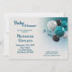 Snygg inbjudan till babydusch med en vacker dekoration av metallballonger.