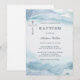 Blue baptism invitation with cross design — a soft watercolor style perfect for celebrating a baby boy’s special day with family and friends.