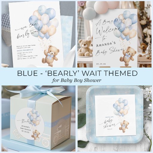 Blue - We Can Bearly Wait - Teddy Bear CollectionDesignad av Pixelia Designs