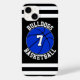 Gör din egen personlig-telefon för basketbollspelare med blått team färg. Ett telefonfodral för anpassadet som du kan anpassa med ditt eget basketlag namn och basketbollspelarens jersey-nummer. Du kan till och med anpassa bakgrunden till färg (för närvarande svart). Klicka bara för att redigera verktygen för anpassning och använda. De ger en underbar gåva till basketspelare, inklusive basketbollsensorer, eller som en laggåva till basketbollslag med blått lag färg.
