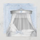 Vackert, vitt, snöre-korginal med elegant silver och vit kanopi. Elegant och vackra duschinbjudan till pojke, blå och vit. Blått ögonfransar och blå snöre-bakgrund har en vit korgbas med vintage med blå båge.