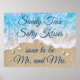 Denna söta Poster i Bröllop accentueras av roligten som säger att Sandy Toes Salty Kisses snart kommer att bli Mr. och Mrs. skapar det perfekt för att markera vägen till din strand- eller tropiska ceremoni i bröllop, eftersom den är dekorerad med blå strand vinkarare, strand, stjärnfisk, sjöar och sanddollar. Den ingår i den blå samlingen för Vågar Bröllop.