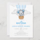 Bear Luftballong Boy Baptism-inbjudan med söt blå björn i blå luftballong.