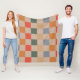 Blue Beige Orange Brown Checkered Gingham Mönster Fleecefilt