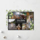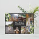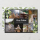 Fotokollage julkort med gröna vrickor med vita blommor och blåbär med sex foton av din familj.