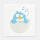 En blå fågelskraffering med musik noter runt den. Den här designen ser ut att vara effektiv på dessa Pappra servetter