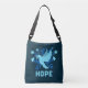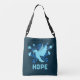 Blue Bird of Hope and Peace. Grafik- och textdesign som representerar silhuetten på en duva med hopp om ord. Kroppsbag för hoppingivande och optimistiska människor.