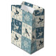 Abstract modern winter Christmas and New Year blue and white snowflake and bird cute pattern, elegant grid design for holidays.
