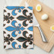Blue Black Baroque Fleur-de-lis Pattern Design Kökshandduk