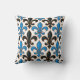 Blue Black Baroque Fleur-de-lis Pattern Design Kudde