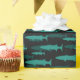 Radbyte för utskriften av coola barracuda-presenter. Blå barracudas simmar på en svart bakgrund.