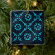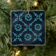 Blue Black Geometric Tile Board Game Distressed Julgransprydnad Keramik