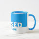 Modern Blue BLESSED i Jesus Namn Christian mugg, med ord BLESSED i WHITE-typografi och i JESUS NAMN i BLUE. All text är ANPASSADE, så att du kan skapa din egen text och lägga till din favoritskriptreferens. Mugg skulle ge en underbar gåva till jul, födelsedagar, Mors dag, Fars dag etc. Andra färg (inklusive glitter) finns tillgängliga.