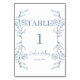 Blue Blommigt Boho Side Gräns Bröllop Bordsnummer