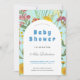 Blue Blommigt Boy Elegant Square Baby Shower Inbjudningar