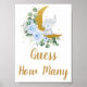 Blue Blommigt Greenery Elephant gissar hur många t Poster