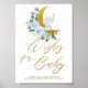 Den här koordinerande bordsskylten med chic har ett sött baby-elefant sitta på en pastellblå blommigt och ett grönt, adornerat halvmåne måne. Matchande artiklar tillgängliga i arkivet! c) Lycklig Cat Studio