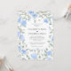 Vackra hand plockade blå vattenfärgblommor med blomstrande vingrej och löv skapar ett vackert ram för denna vackra bröllopsinbjudan. Lägg till förlovningen eller favoritfotot på baksidan.
