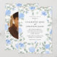 Blue Blommigt Photo Modern Watercolor Bröllop Inbjudningar