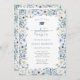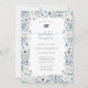 Blåa Blommigten Studenten-inbjudan. Vänner och familj i inbjudan för att fira er prestation med denna charmerande och sofistikerade inbjudan till studentfest, designad för både högskolelärare och student. Den här designen är ren elegans och har en vackert handmålad vattenfärgsrektangulär ram som är försedd med dammig blå, gräddaktig och vit ros och grönt och lush sage eucalyptus greenergiy. En söt dammig blå studentmössa lägger till en roligt och en känslofull beröring, medan det mjuka grått-teckensnittet kompletterar det tidslösa estetiska. Baksidan av inbjudan har ett samordnande mönster tillsammans med ett utrymme för ett enda speciellt foto, skapar det som ett perfekt för att belysa detta milstolpe. Idealiskt för vår och sommartid firande, sammanför denna inbjudan klassiskt stil och personlig charm för ett evenemang att minnas!