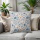 This throw pillow highlights a graceful botanical watercolor pattern with soft blue and blush flowers intertwined with flowing leaves. The romantic yet calming design adds timeless charm and gentle color to any living space.