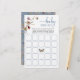 Blue Boho Baby Bingo Game. Gör presentöppningen ännu mer roligt med Boho Butterfly Baby Bingo, ett charmerande tillskott till dina babyduschspel. Framsidan har dammigt blått skript i eleganten, skapar ett vackert sammanhängande utseende, medan gästerna fyller i sina bingokort när presenter är omslaget. Baksidan visar en koordinerande mönster av boho butterflies, vintage vilda blommor, torkade gräs och mjuk grönt blad på en dammig blå bakgrund, som tillför en sofistikerad och vismisk beröring. Designat i varma örhänta toner av tan, brun, rost, terrakotta, bränd orange och grönt för mutad spage, är detta spel perfekt för alla vår, sommar, fall eller vinterbabyduschar. Behålla dina gäster engagerade och underhållna med ett spel som blandar roligt utan stil!