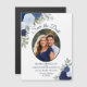 Blue Boho Blommigt & Photo Bröllop spara datum Magnetisk Inbjudningskort
