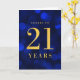 Chic 21: a födelsedagekortet med ord "Cheers to 21 Years" (Cheers to 21 Years) i faux-guld-folie mot blå safir bokeh ljus mönster bakgrund. Om du vill lägga till text inuti kortet klickar du på knappen "Anpassa". *Observera att Zazzle Watermark som visas i zoomförhandsvisningen INTE visas på den färdiga tryckta produkten. © Rosewood and Citrus