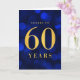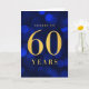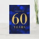 Chic 60: e födelsedagskortet med ord "Cheers to 60 Years" i faux-guld-folie mot blå safir-bakgrunden vid ljus mönster. Om du vill lägga till text inuti kortet klickar du på knappen "Anpassa". *Observera att Zazzle Watermark som visas i zoomförhandsvisningen INTE visas på den färdiga tryckta produkten. © Rosewood and Citrus