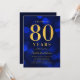 Klassen 80:e Födelsedagsfest inbjudan med ord "Cheers to 80 Years" i faux guld-folie mot en safir blå bokeh mönster-bakgrund. Inbjudan har en blå bakgrund på baksidan. Anpassa den här inbjudan med dina detaljer genom att ersätta platshållartexten. Om du vill ha fler alternativ, t.ex. att ändra teckensnitt, storlek text / färg eller mellanrummet mellan brev, klickar du på knappen "Anpassa". *Observera att Zazzle Watermark som visas i zoomförhandsvisningen INTE visas på den färdiga tryckta produkten. © Rosewood and Citrus