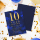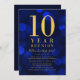 Klassens återföreningsinbjudan med ord "10 års återförening" i faux-guld mot blå bakgrund vid ljus mönster i gränd. Inbjudan har en blå bakgrund på baksidan. Anpassa den här inbjudan med dina detaljer genom att ersätta platshållartexten. Om du vill ha fler alternativ, t.ex. att ändra teckensnitt, storlek text / färg eller mellanrummet mellan brev, klickar du på knappen "Anpassa". *Observera att Zazzle Watermark som visas i zoomförhandsvisningen INTE visas på den färdiga tryckta produkten. © Rosewood and Citrus
