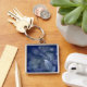 Blue Bokeh Lövs Fyrkantig Silverfärgad Nyckelring