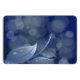 Blå är bakgrunden färg-Bokeh med silver och blå löv som fortfarande har damm på dem från kvällspiset.