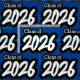 Fira din klass med den här djärva penselutformningen för 2026 års klass. Fet vit brev på en svart kontur över en färg-skolbakgrund. Perfekt för att lägga till en skjorta eller annat projekt för en högre eller student i ditt liv. Design finns i svartvitt, rött, orange, grönt, blått, lila, vitt, silver grått och maron. Eller ändra bakgrunden färg så att den matchar din skola. Matchande produkter är tillgängliga.