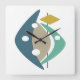 Den här funkyn i mitten av århundradet har bomeranger, cirklar och diamantformer i en kombination av färg turkos, blått, tan, guld och svart. Det här kommer att göra ett fantastiskt påstående på din mur.