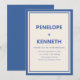 This wedding invitation features a blue border with a clean, simple layout that highlights your names and wedding details. The classic design feels polished and easy to read, making it a great choice for formal or traditional celebrations. The structured layout brings a refined look that works across venues and styles. Personalize the names, date, and location to match your day.
