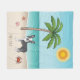 Desteis ursprungliga tecknad illustrerar en söt blå och vit jackar färg Boston Terrier-hund som står på en tropisk sommarstrand. På beige färg-sandan finns det en träd i handflatan, en rosa som är säsongsbunt med en stjärnfisk och en rödkrabba. Vatten är turkosblått med lite vinkart och sol lyser över horisonten. Det finns också ett textområde som kan anpassas efter namn.