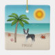 Blue Boston Terrier på en tropisk sommarstuga Julgransprydnad Keramik